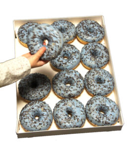 Dalším z reálných příkladů je obalové řešení využívající materiál foodWave, který je certifikovaný pro přímý styk s potravinami. Tento projekt realizovala společnost Thimm, jež také vyvinula zmíněný materiál, pro segment mraženého sladkého pečiva, konkrétně donutů a koblih. V daném případě obal plní funkci primárního obalu – výrobek se do něj vkládá přímo po výrobě, následně se celý komplet zmrazí a ve stejné podobě putuje až do obchodu. Obal tak není pouze přepravním řešením, ale zároveň slouží jako finální prodejní balení.